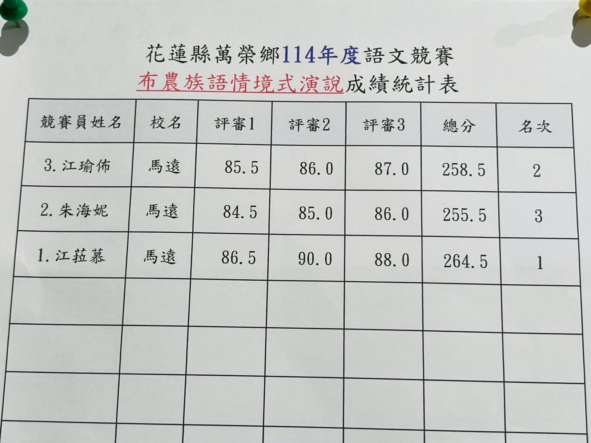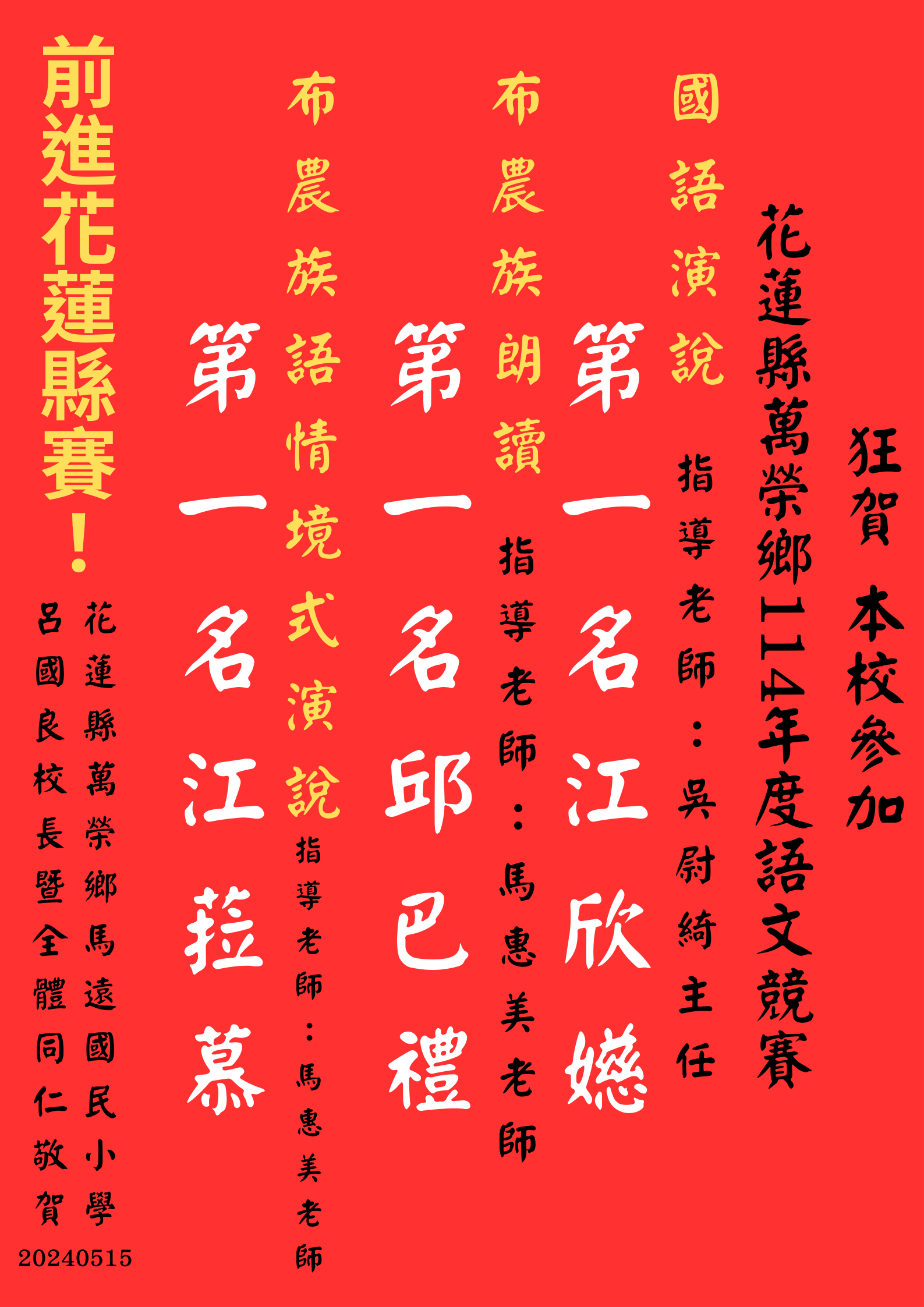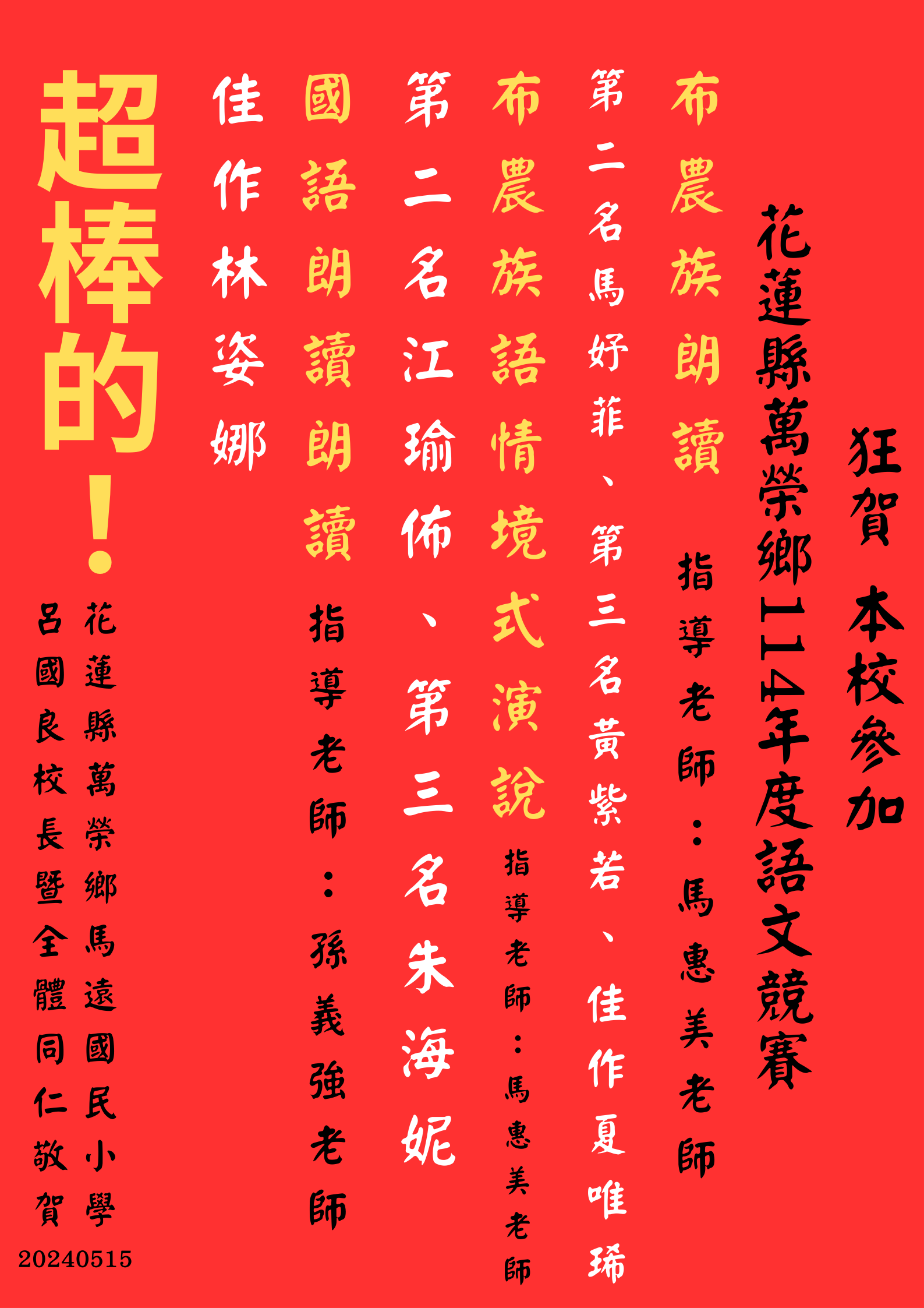 114年萬榮鄉語文競賽結果出爐
