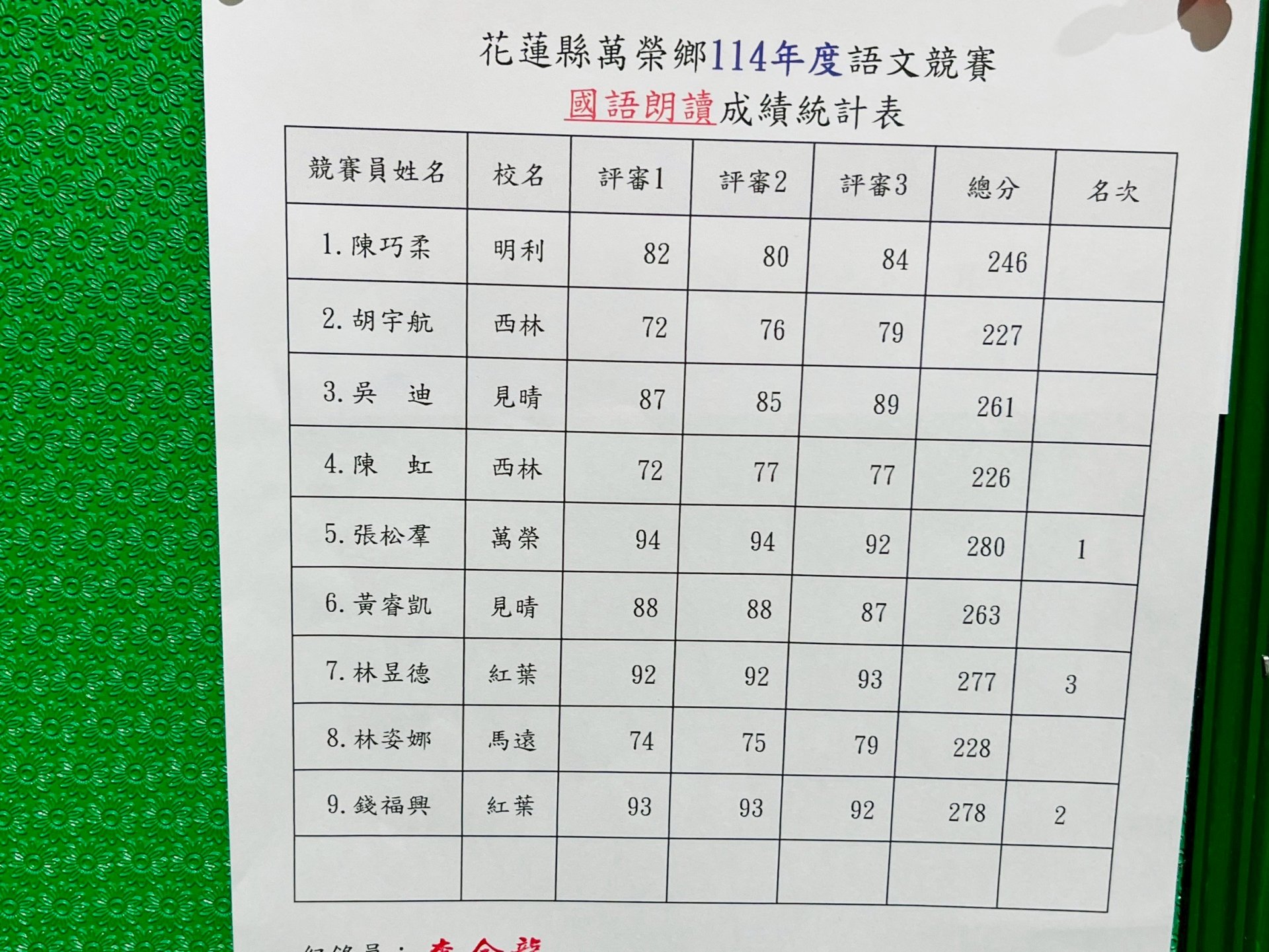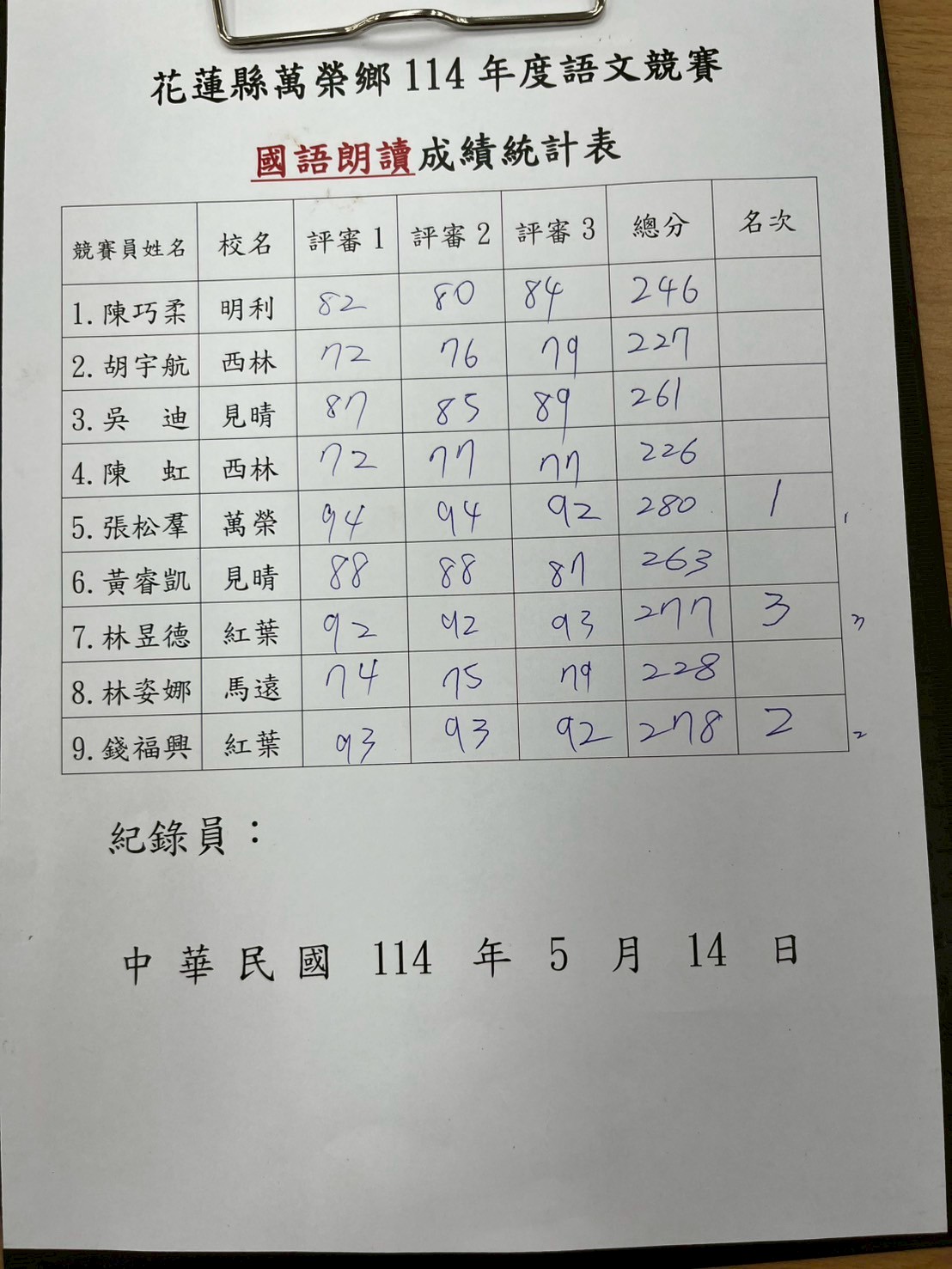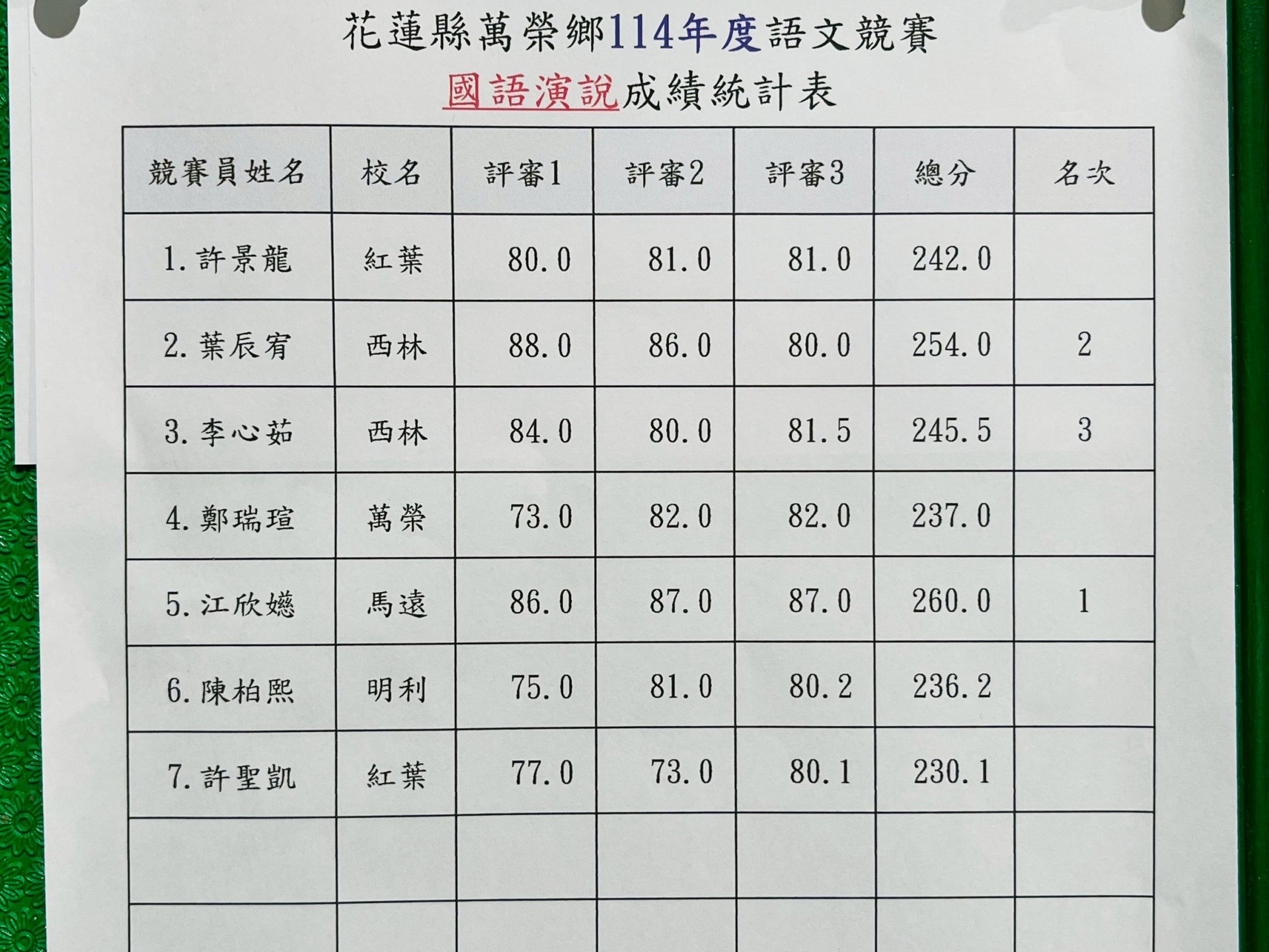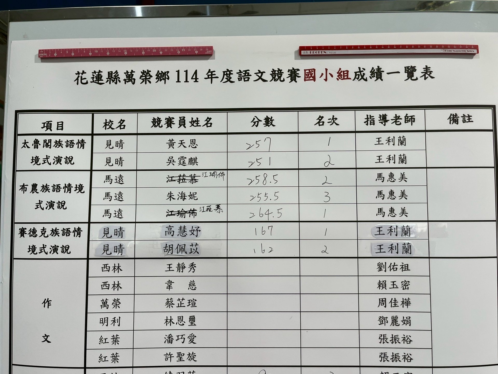 114年萬榮鄉語文競賽結果出爐